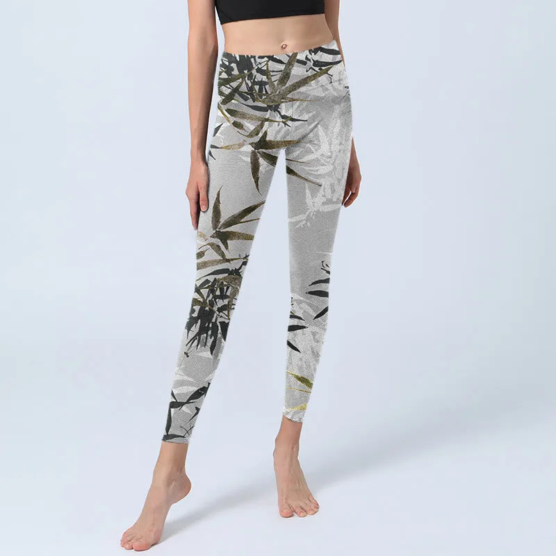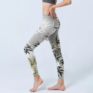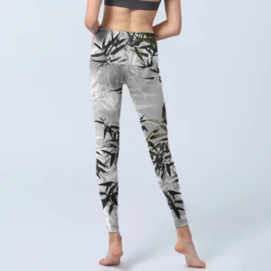 - Design Inspiration: The leggings feature a design with bold. abstract bamboo patterns in shades of gray and green. The intricate details create a natural. flowing effect. while the contrasting colors add depth and elegance. This modern design blends nature-inspired elements with a minimalist aesthetic. offering a stylish and versatile look.
