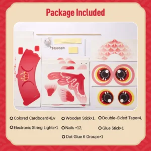 • Package Included: Colored Cardboard*8. Wooden Stick*1. Double-Sided Tape*4. Electronic String Lights*1. Nails *12. Glue Stick*1. Dot Glue 6 Groups*1. Button Battery*1