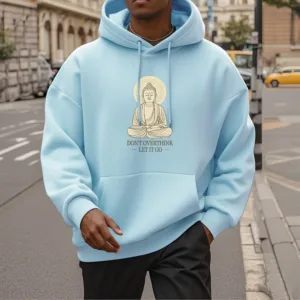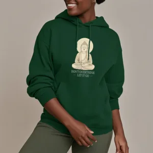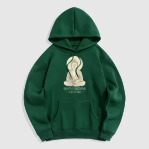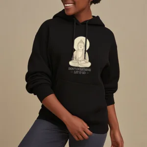 Let It Go Polyester Hoodie encourages peace of mind with its serene Buddha design and calming reminder to ??Don’t Overthink.??Crafted from soft. fleece-lined polyester. this hoodie offers warmth and comfort. making it ideal for relaxation and reflection. Embrace inner calm with this gentle design that promotes a balanced and thoughtful mindset. perfect for meditation or any moment of stillness.