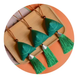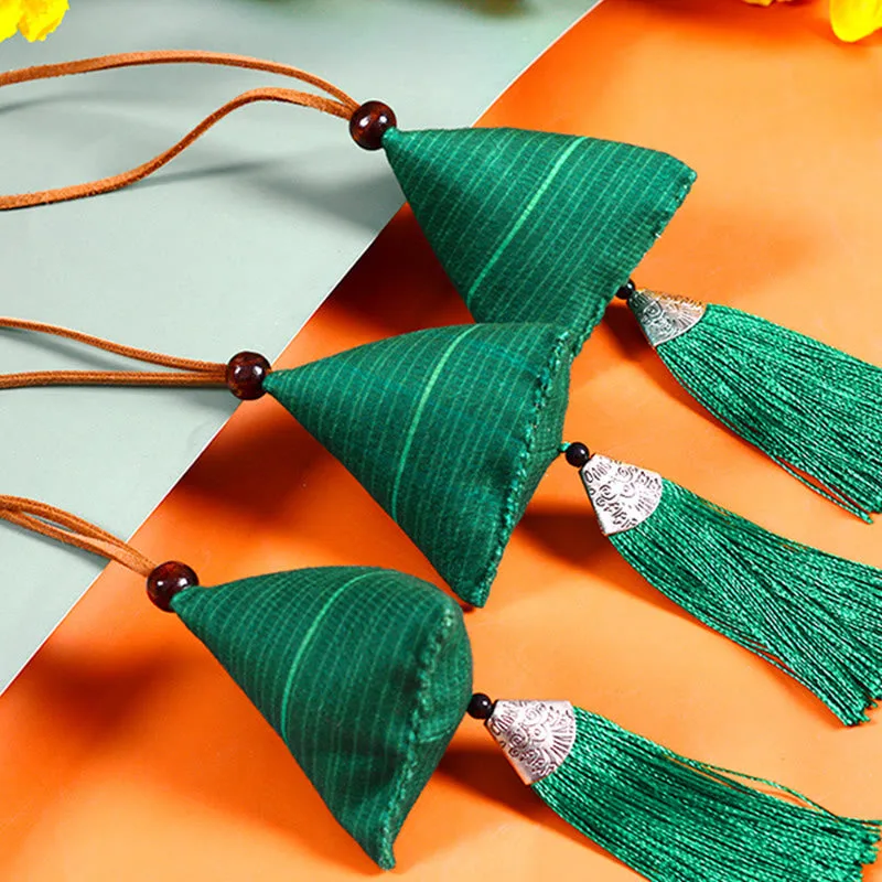Add a touch of cultural charm to your space with the Mythstone Dragon Boat Festival Zongzi Pattern Sachet Protection Tassel Hanging Decoration. This intricately designed sachet features traditional dragon boat festival zongzi patterns. symbolizing good luck and warding off evil spirits. Hang it anywhere for a unique and auspicious ambiance.