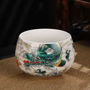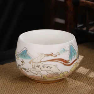 Mythstone Dragon Cicada Bamboo Deer Crane Lotus Plum Flower Ceramic Teacup Kung Fu Tea Cup Bowl 185ml