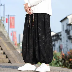 Dragon Design Cotton Pants feature a striking dragon motif. symbolizing strength and protection. made from soft. breathable cotton. These pants provide a comfortable. relaxed fit with practical pockets. combining ease of movement with functional storage. The dragon design adds a meaningful touch. making them ideal for those who appreciate comfort and symbolism in their attire.