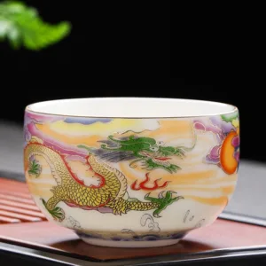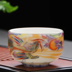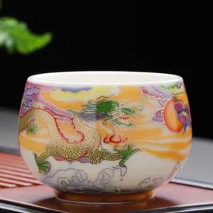 Mythstone Dragon Phoenix Auspicious Clouds Sun Ocean Waves Ceramic Teacup Kung Fu Tea Cup