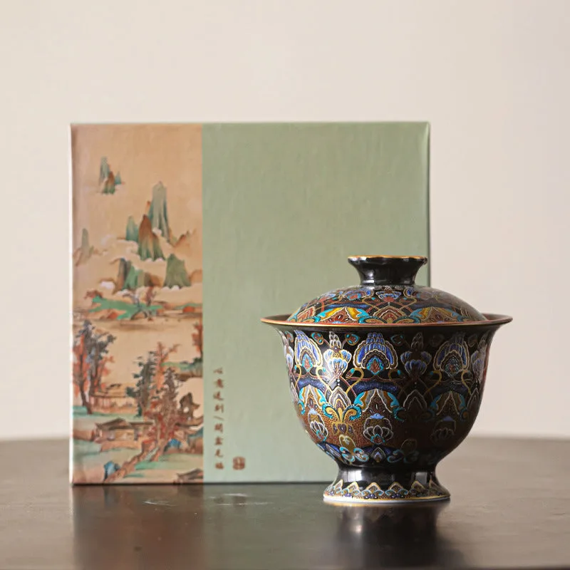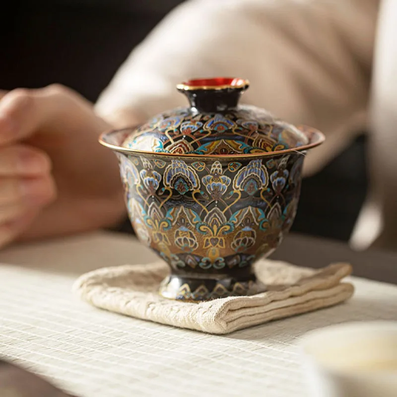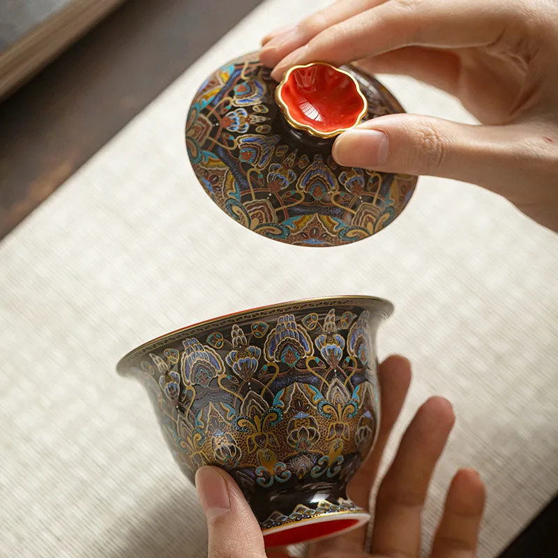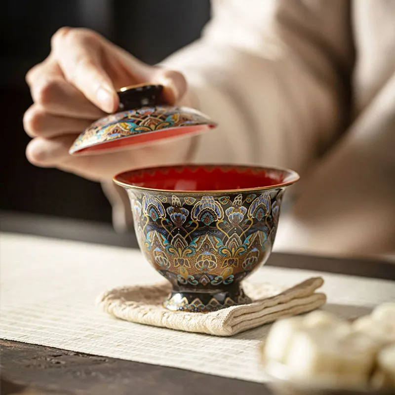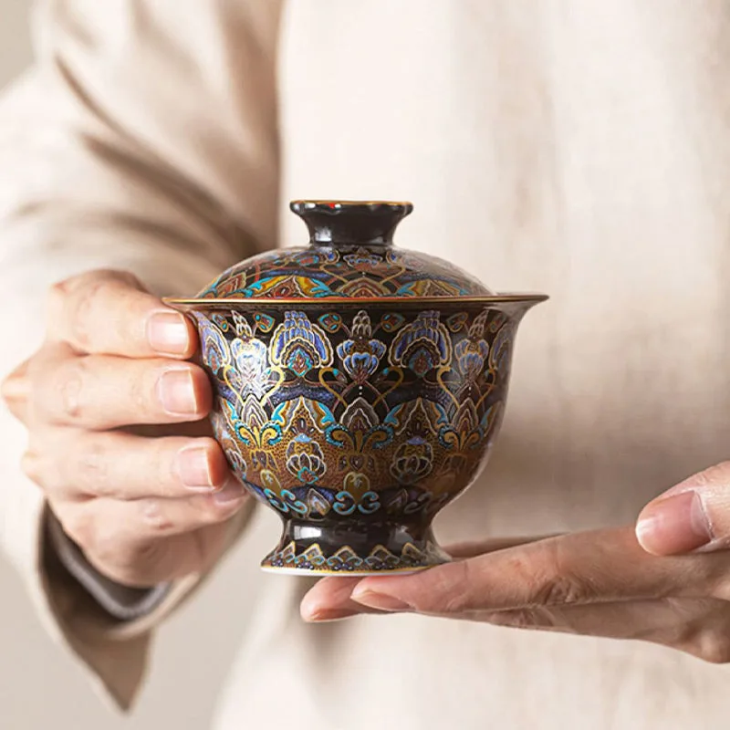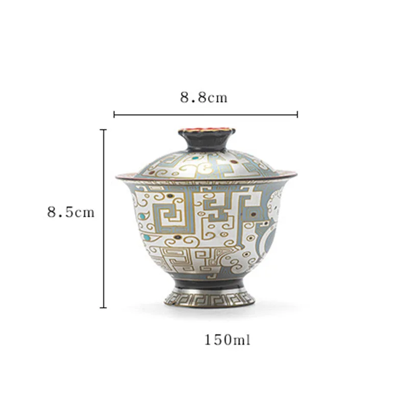Traditional Chinese Kung Fu Sancai cover Bowl Tea Set cups Saucer with Lid. 150ml capacity teacups. The lid bowl has a heat insulation function. When you are busy. you can put the lid on. It can keep the temperature for a while.