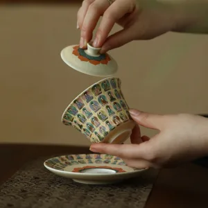 Traditional Chinese Kung Fu Sancai cover Bowl Tea Set cups Saucer with Lid. The lid bowl has a heat insulation function. When you are busy. you can put the lid on. It can keep the temperature for a while.