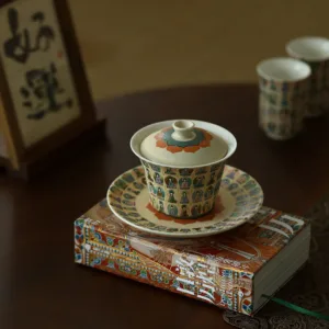 Gaiwan is a kind of tea set with lid. saucer and cup. It is called sancai cup. the lip is compared to heaven. the tray is compared to land. and the cup is compared to human.
