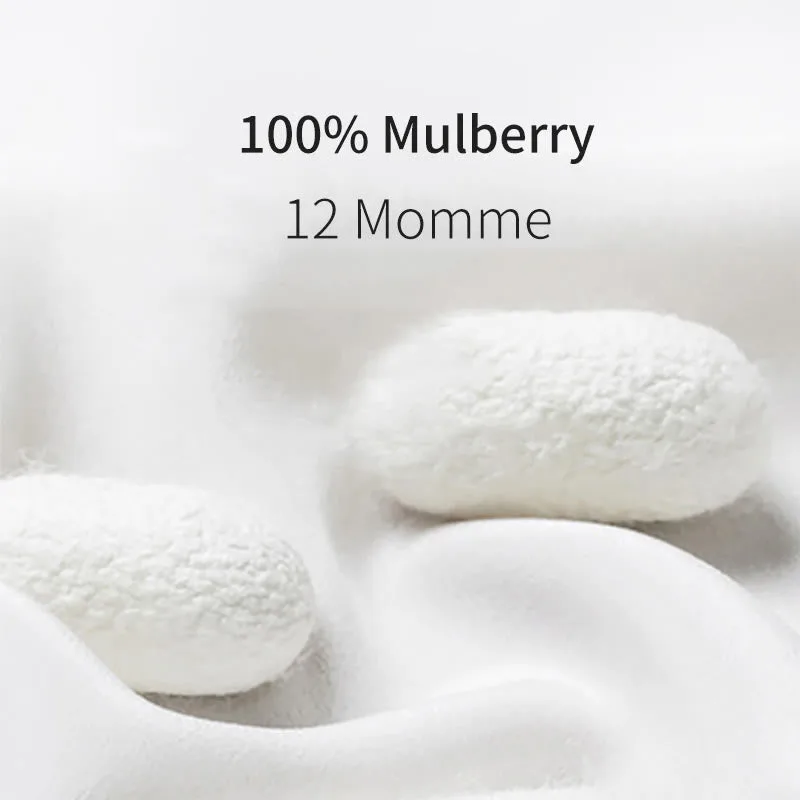 Momme is a unit of measurement. much like thread count in Cotton. Momme describes the silk’s weight and density. Higher momme means there is more strands of silk per 100 yards of fabric. therefore making the product heavier. Momme can range anywhere from 11-momme to 25-momme.