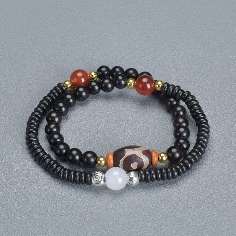 - Material: Ebony Wood. Green Sandalwood. Sandalwood. Dzi Bead. Red Agate. Agate. Alloy