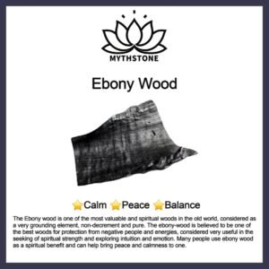 The Ebony wood is one of the most valuable and spiritual woods in the old world. considered as a very grounding element. non-decrement and pure. The ebony-wood is believed to be one of the best woods for protection from negative people and energies. considered very useful in the seeking of spiritual strength and exploring intuition and emotion. Many people use ebony wood as a spiritual benefit and can help bring peace and calmness to one.
