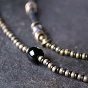 - Bead Size: Ebony 1.5*5mm. Dzi Bead 10mm. Tiger Eye 16*8mm. Black Onyx 10*13mm. Copper 3*5mm