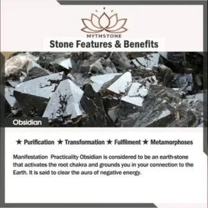 Obsidian is considered to be an earth-stone that activates the root chakra and grounds you in your connection to the Earth. It is said to clear the aura of negative energy.