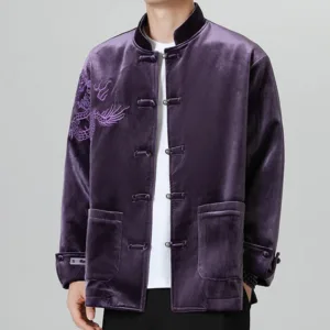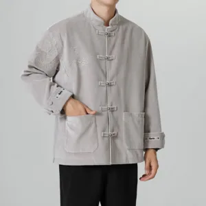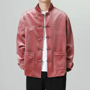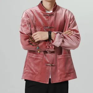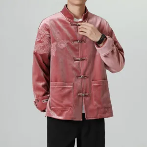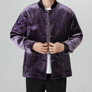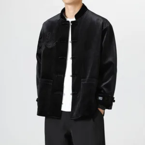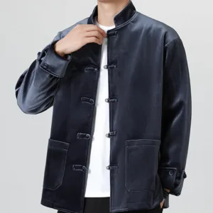 Frog-Button Chinese Tang Suit shirtfeatures a classic design with a traditional frog-button closure. Made from a blend of cotton and linen. this men’s jacket offers comfort and breathability. The Tang suit style embodies cultural heritage and timeless elegance. making it perfect for special occasions or everyday wear for those who appreciate traditional Chinese attire.