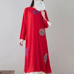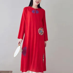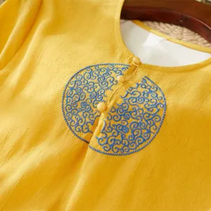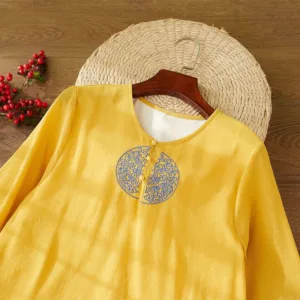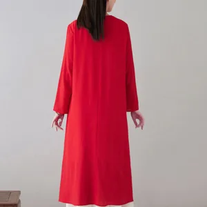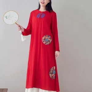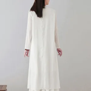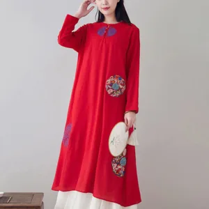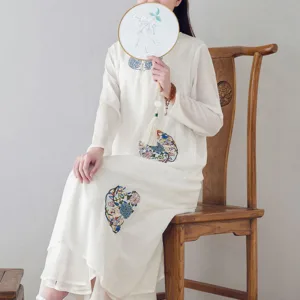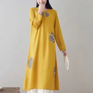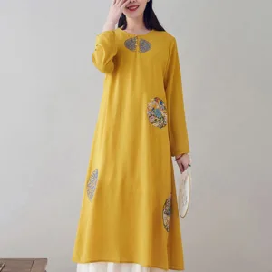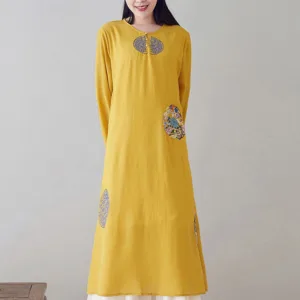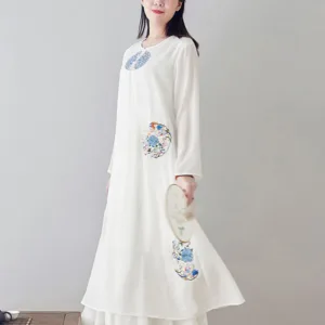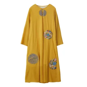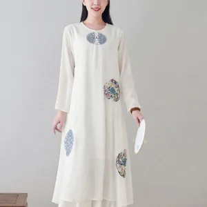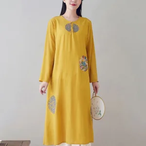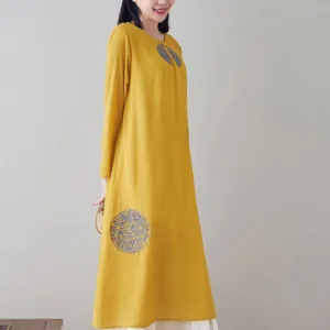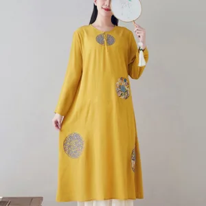 Embroidery Long Sleeve dress is thoughtfully crafted for those engaged in meditation and spiritual practices. This midi dress features intricate embroidery. enhancing its serene aesthetic. The comfortable fit and soft fabric allow for unrestricted movement. making it ideal for extended periods of meditation or daily mindfulness exercises. embodying a blend of spiritual purpose and subtle elegance.