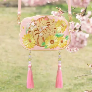 Carefully crafted using high-quality materials. the Mythstone Embroidery Cute Animal Hanfu Bag showcases intricate designs of lucky pandas. cats. Shiba Inus. deer. rabbits. foxes. and flowers. This crossbody shoulder bag merges adorable aesthetics with expert embroidery. offering both style and a touch of symbolism in one accessory.