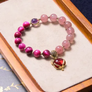 - Material: Strawberry Quartz. Tiger Eye. Amethyst. Copper Alloy; Purple Jade