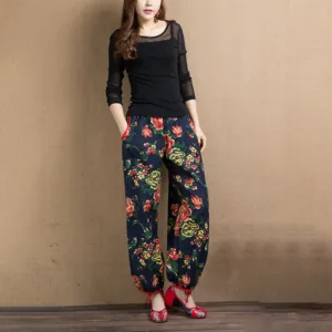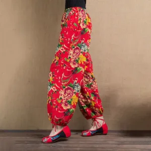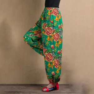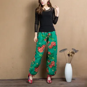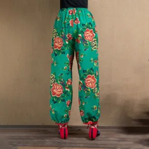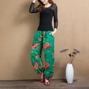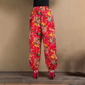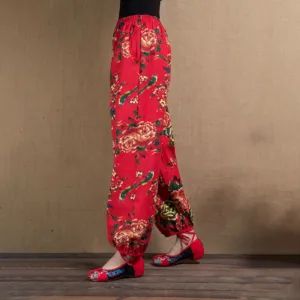 Ethnic Style Red Green Flowers Harem pants showcase a vibrant floral print that captures the essence of cultural artistry. Made from soft. breathable fabric. these pants offer a relaxed fit and practical pockets. perfect for everyday wear. The unique design blends traditional aesthetics with modern comfort. making them an ideal choice for those who appreciate distinctive. culturally inspired styles.