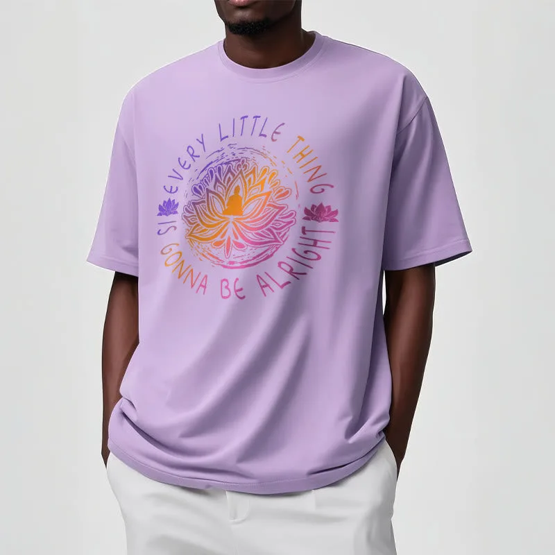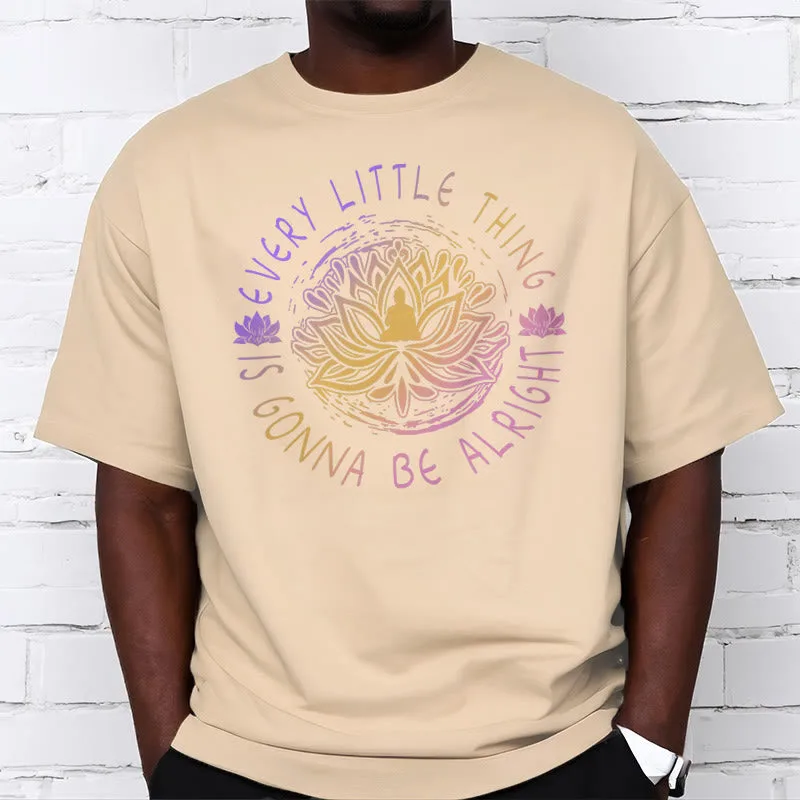 Every Little Thing Is Gonna Be Alright T-shirt features an uplifting message. designed to inspire positivity and calm. Crafted from soft. breathable fabric. this T-shirt offers comfort and a relaxed fit. The serene design and encouraging text make it a perfect choice for spreading positive vibes. whether for casual wear or moments of mindfulness.