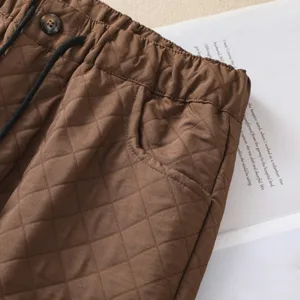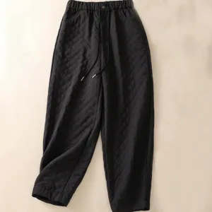 Simple Plaid Cotton Pants offer cozy comfort with their diamond-patterned embossed design and soft cotton fabric. perfect for fall and winter. Featuring a practical drawstring waist and convenient side pockets. these harem-style pants allow ease of movement and versatility for any occasion. The classic plaid design and durable material make these pants a timeless addition to your collection. providing warmth and functionality during cooler months.