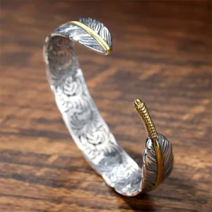 Crafted with care and attention to detail. our Mythstone Feather Pattern Carved Luck Wealth Cuff Bracelet Bangle is a symbol of balance. healing. and prosperity. Made from copper. it attracts positive energy. wealth. and luck. while its unique design adds a touch of elegance to any outfit. Experience the power of meaningful jewelry today.