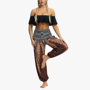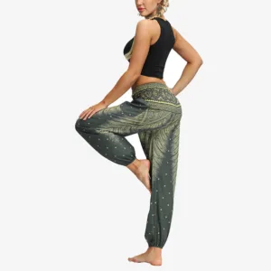 Unleash your free spirit with the Mythstone Feather Print Hippie Baggy pants. These boho-inspired high-waist yoga pants merge effortless style with practicality. featuring deep pockets for convenience. Tailored from soft. breathable fabric. they offer unparalleled comfort and freedom of movement. making them perfect for yoga. meditation. or casual outings. The distinctive feather print adds a touch of nature-inspired elegance. embodying a connection to the earth and your inner self.