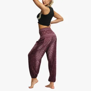 - SOFT FABRIC: Made from soft and breathable light polyester material. Loose fit and flowy Thai harem trousers. Two side pockets design.