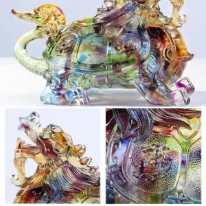 The Liuli Art Piece features dragon turtle symbols and craftsmanship. It’s popular among most people because it attracts good luck. fortune. abundance. wealth. protection. and prosperity. It also serves as a shield against negativity and stress. Furthermore. it could be your bodyguard and help you achieve a better balance of energy.