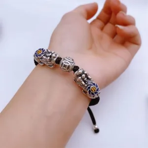 The Pixiu provides a minimum of six blessings as follows:Conducts good luck and fortune. Generate good Feng Shui or earth luck. Enhances wealth and riches. Protects individuals and building. Protects against evil forces. obstacles. and hardship. Brings unexpected windfall luck. One of the popular ways to retain a Pixiu is to wear it on a bracelet.