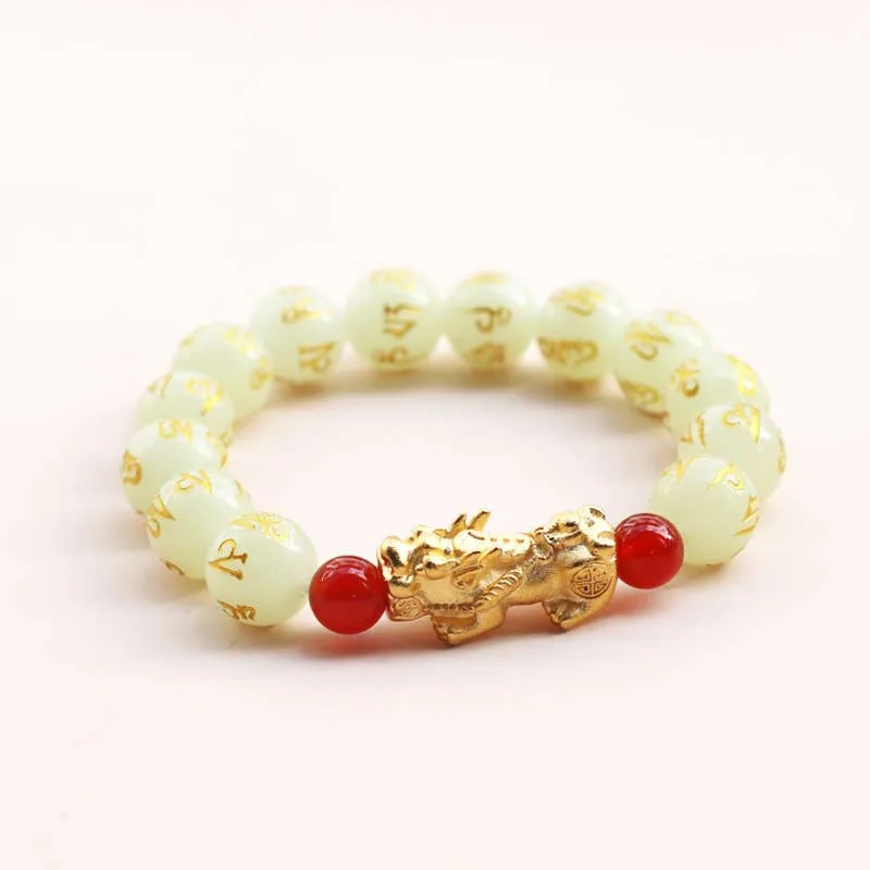 The Pixiu provides a minimum of six blessings as follows: Conducts good luck and fortune. Generate good Feng Shui or Earth luck. Enhances wealth and riches. Protects individuals and building. Protects against evil forces. obstacles. and hardship. Brings unexpected windfall luck. One of the popular ways to retain a Pixiu is to wear it on a bracelet.
