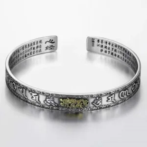 FengShui Lucky PiXiu Wealth Bracelet comes in three stunning designs: Pixiu. Dragon. and Lotus. Each bracelet features the sacred Heart Sutra inscription on the inner side for extra blessings. This beautifully crafted bracelet is not only a stylish accessory but also believed to bring good fortune and wealth.