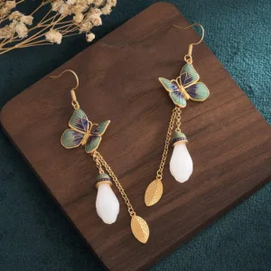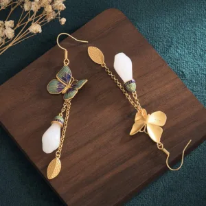 These Mythstone FengShui White Jade Fortune Earrings are crafted with high-quality white jade and copper. White jade is known for its protective qualities. bringing luck and blessings while promoting clarity and harmony. Copper helps to ground and balance energy. attract wealth and prosperity. and enhance communication with higher spiritual realms. These 80mm drop earrings are handmade and each possesses its own unique positive meaning.