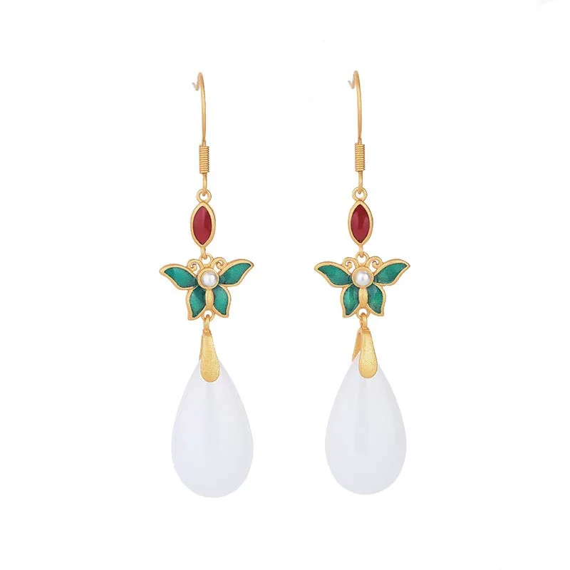 These White Jade Luck Drop Earrings by Mythstone are made of high-quality materials and offer protection. happiness. and good fortune. With a unique positive meaning. these earrings can bring positive change to your life. Made by master craftsmen and featuring natural. environmentally-friendly materials.