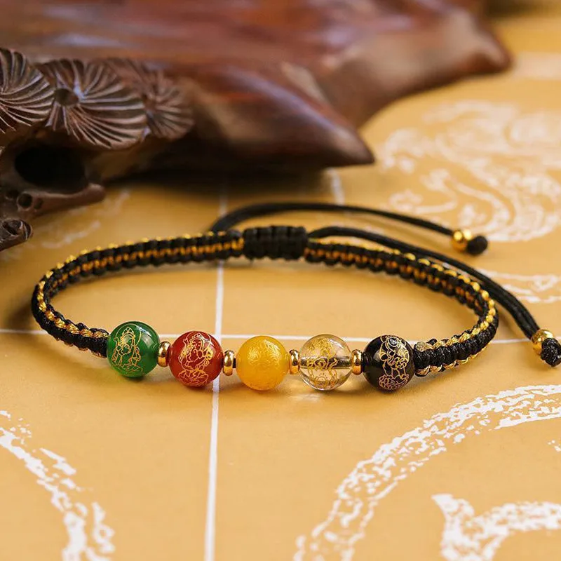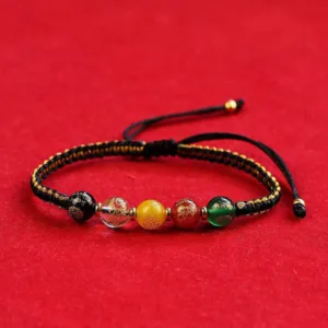 - Material: Green Agate. Black Onyx. White Crystal. Yellow Agate. Red Agate. String. Copper Plated Gold