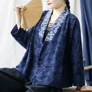 Flower Jacquard V-Neck Long Sleeve jacket features a stunning floral pattern woven into the fabric. offering both elegance and warmth. The V-neck design and long sleeves add a touch of sophistication. while the jacquard texture provides a unique visual appeal. This jacket is perfect for enhancing your wardrobe with a piece that combines style and comfort seamlessly.