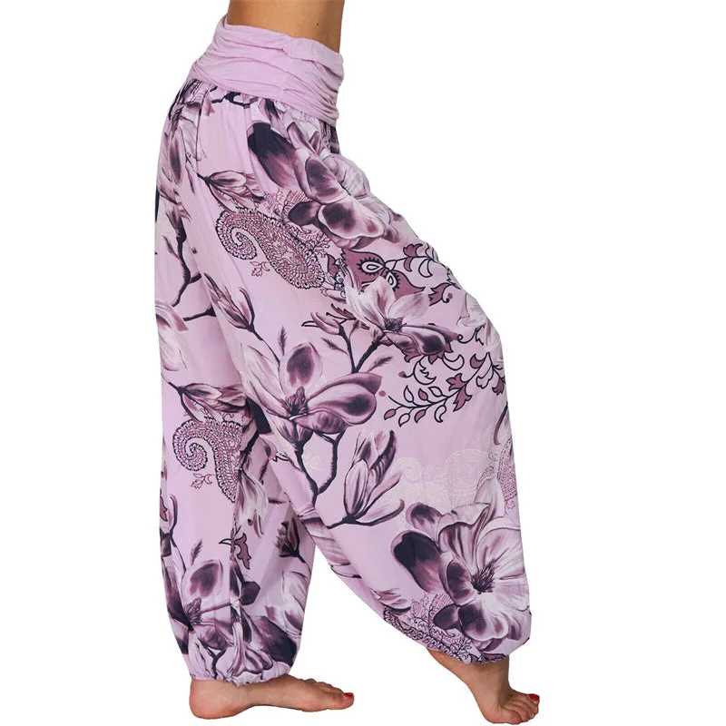 Flower Leaves Yoga pants offer both comfort and style for yoga enthusiasts and casual wearers alike. Designed with a loose harem fit and a vibrant flower leaves pattern. these trousers promote ease of movement and breathability. Perfect for yoga sessions. meditation. or simply relaxing at home. they embody a blend of functionality and aesthetic appeal.
