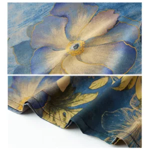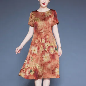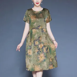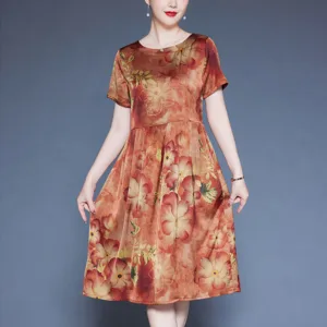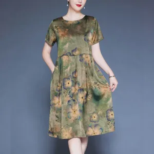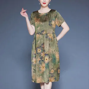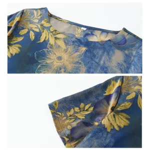 Flowers Leaves dress features a beautiful floral and leaf pattern. short sleeves. and a midi length with pockets. This dress combines elegance and practicality. offering a comfortable fit with its breathable fabric. The vibrant design adds a touch of nature-inspired beauty. making it perfect for various occasions. A versatile choice for enhancing your wardrobe.