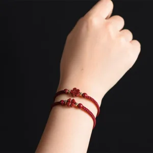Elevate your vibes with our Mythstone Four Leaf Clover Five-petal Flower Cinnabar Blessing Red String Bracelet. Infused with the symbolism of luck and positivity. this bracelet adds a touch of blessings to your daily style. Adorn your wrist with this unique piece and attract positive energies and good fortune into your life.