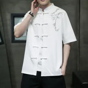Leaf Dragonfly Embroidery shirt features delicate leaf and dragonfly patterns. representing nature’s harmony and renewal. The intricate embroidery symbolizes growth and balance. drawing inspiration from natural elements to create a meaningful design. Each detail reflects a connection to the serene and transformative power of the natural world. making this shirt a unique expression of peace and mindfulness.