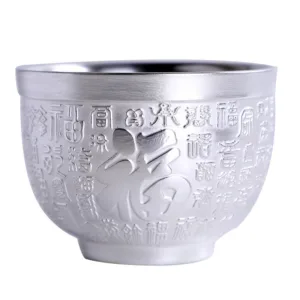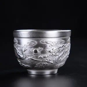 Mythstone Fu Character Dragon Phoenix Horse Koi Fish Silver Gilding Ceramic Teacup Kung Fu Tea Cup