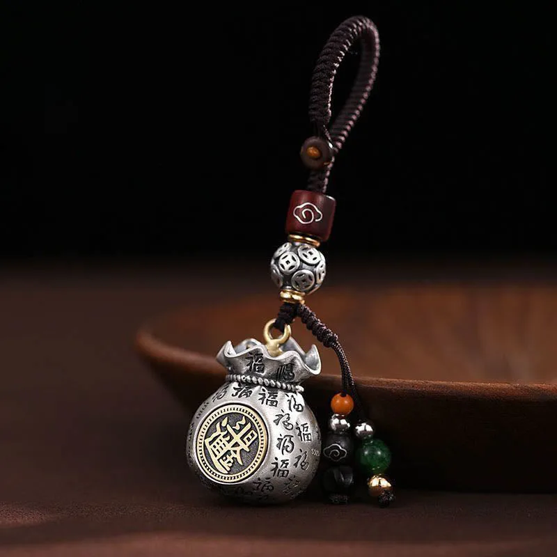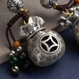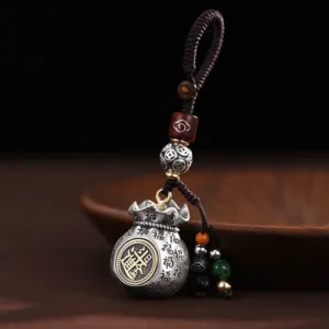 Money Bag Key Chain brings prosperity with its money bag-shaped charm engraved with the powerful ??Fu??symbol. signifying good fortune and daily wealth. The money bag design represents abundance and success. making it a perfect companion for those who seek continuous financial growth. A compact charm. this key chain serves as a reminder of steady income and ongoing prosperity.