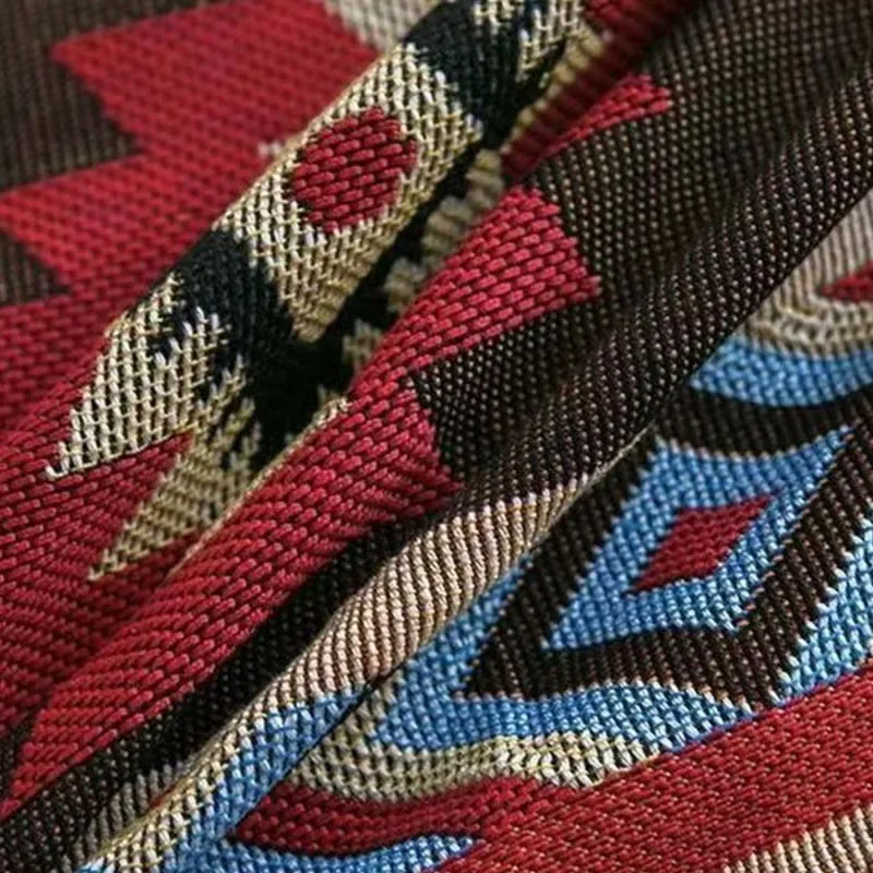 - Features bold colors. rich texture. and stylish geometric patterns.