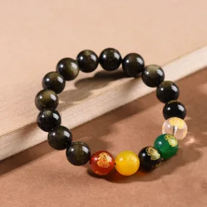 Gold Obsidian is a kind of Obsidian that contains a bright golden substance. Obsidian is considered to have the effect of resisting. aMythstoneorbing negative energy and protecting the body. and is often used in divination calculations and predicting the future. The effect of gold sheen Obsidian is stronger than Obsidian. it can enhance vitality. restore people’s spirit. and can also dissolve negative energy.