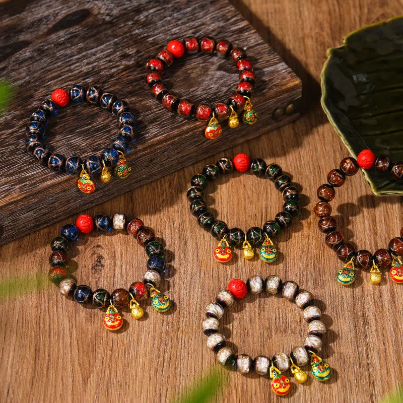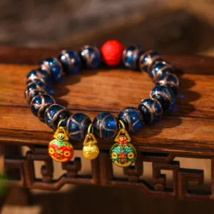 Be the first to review “Mythstone Gold Swallowing Beast Family Colorful Cinnabar Bead Bracelet”