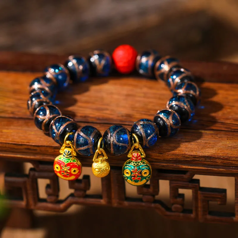 Mythstone Gold Swallowing Beast Family Colorful Cinnabar Bead Bracelet