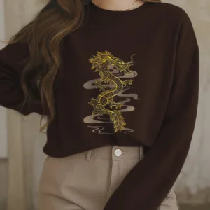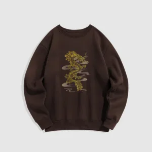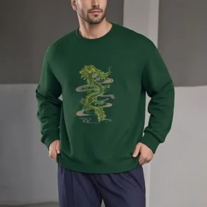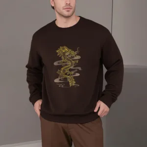 • DESIGN INSPIRATION: The sweatshirt featuring adragon designsymbolizes power. strength. and good fortune. In many cultures. particularly in Asian traditions. the dragon is revered as a protector and a symbol of imperial authority. embodying wisdom and the ability to overcome challenges. inspiring wearers to embrace their inner strength and resilience.