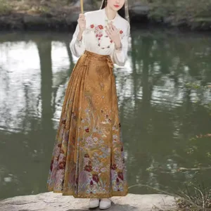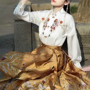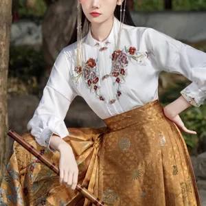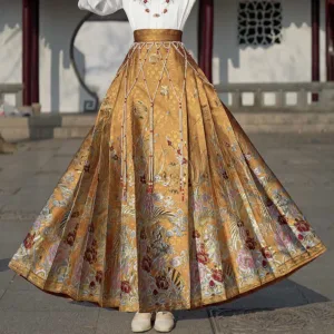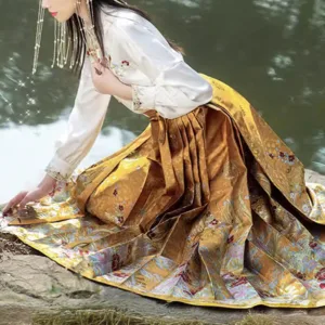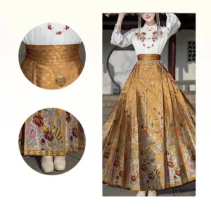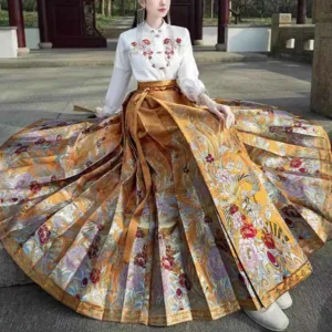 The horse face skirt is a traditional Chinese skirt characterized by its distinct pleated design. It is occasionally referred to in a more generic sense as an apron. This type of skirt is a key component of Hanfu. the traditional dress of Han Chinese women. serving as a lower garment. It is celebrated as one of the most emblematic styles of ancient Chinese skirts.