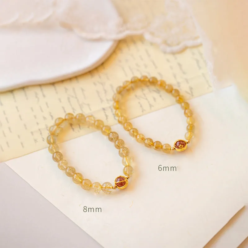 - Material: Rutilated Quartz. Strawberry Quartz. Gold Plated Bead