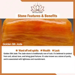 Golden Silk Jade: The Jade stone is traditionally one of luck. It’s believed to protect from evil. attract love. and bring good fortune. It’s also known as a stone of purity. and is associated with lightness and nourishment.