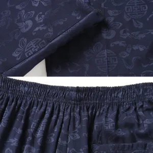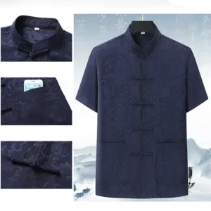 Gourd Flower Leaves set features a traditional Tang suit design with short sleeves and matching pants. Adorned with intricate gourd flower and leaf patterns. this men’s set symbolizes growth and prosperity. Crafted from high-quality fabric. it offers comfort and durability. Ideal for special occasions or daily wear. this set embodies a blend of cultural significance and refined elegance.