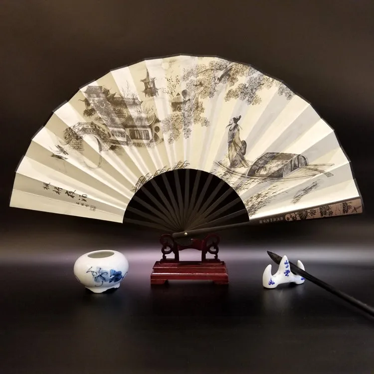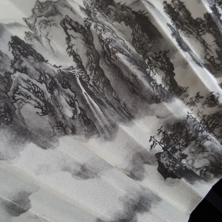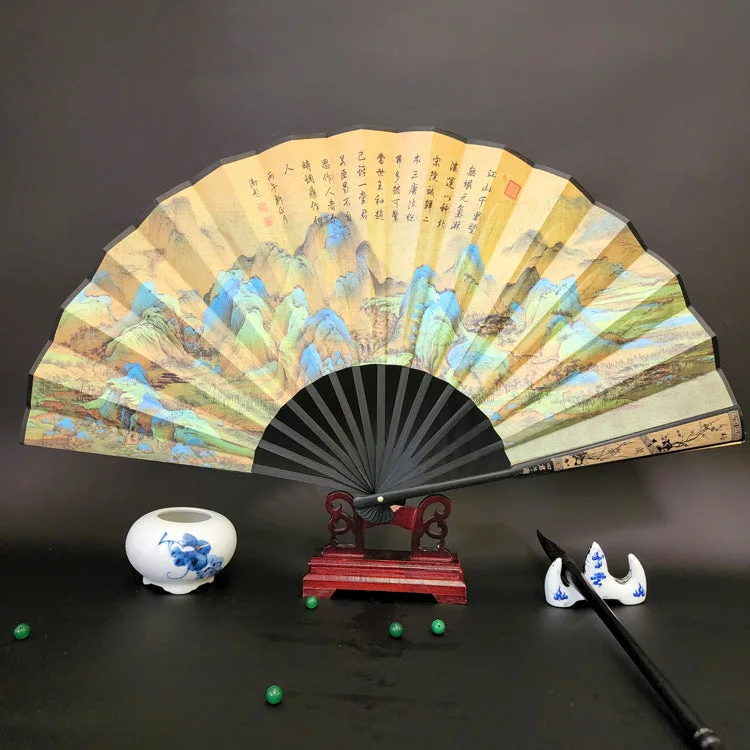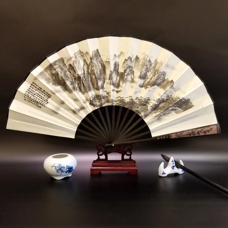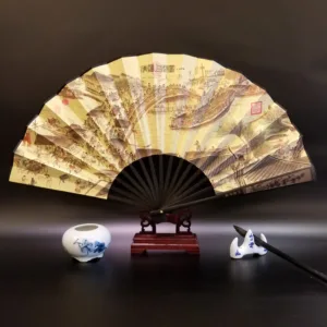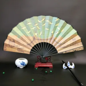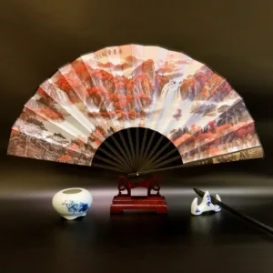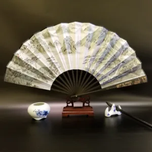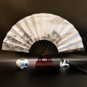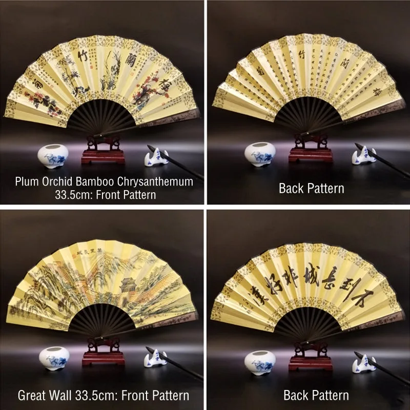Discover the essence of tranquility and heritage with this silk bamboo folding fan. beautifully depicting the Great Wall. mountains. trees. cranes. and bamboo. Measuring 33.5cm. it’s a symbol of endurance. peace. and natural beauty. designed to offer a soothing breeze and a touch of elegance. Ideal for those who appreciate the profound depth of history and the serene grace of nature. this fan seamlessly blends cultural significance with the practicality of cooling comfort. making it a perfect companion for reflective moments or as a distinctive gift.