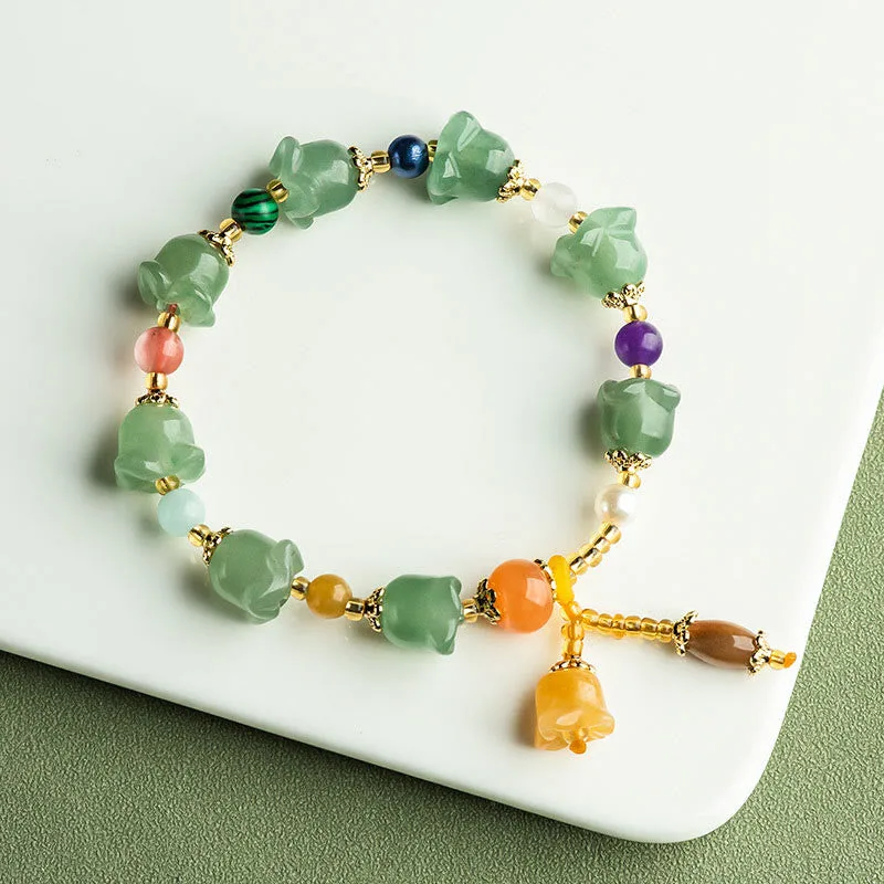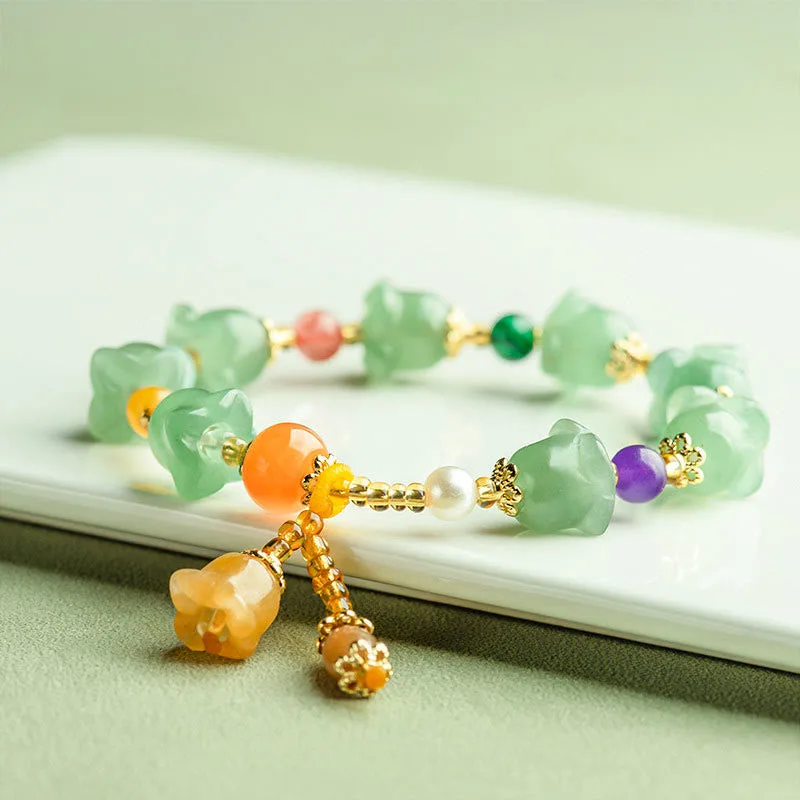 - Material: Green Aventurine. Golden Silk Jade. Pearl